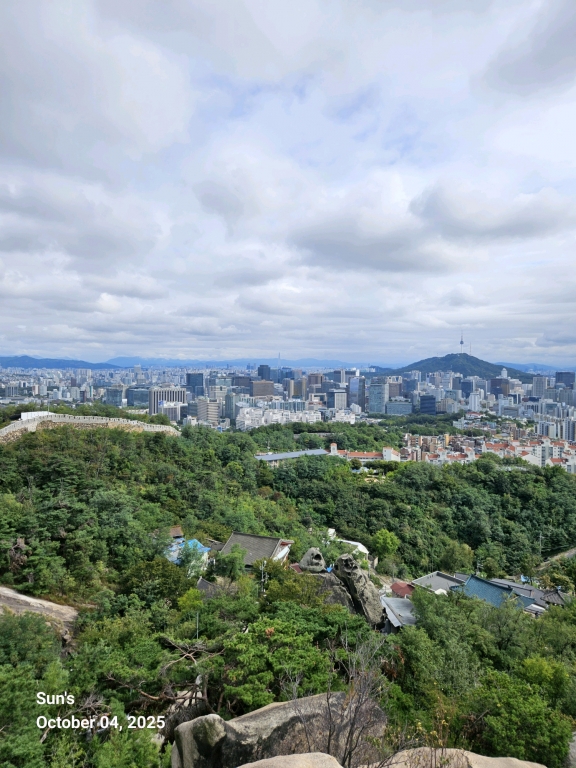 인왕사입구-국사당-선바위-해골바위-정상(338m)-기차바위-인왕산이음길-무악재하늘다리-인왕사둘레길-인왕사입구: 4.4km, 1h 27m