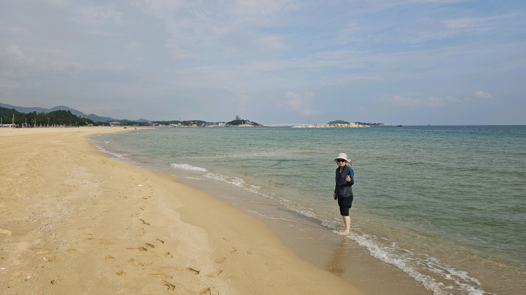 삼포해수욕장 해변을 따라 맨발로 걸었음